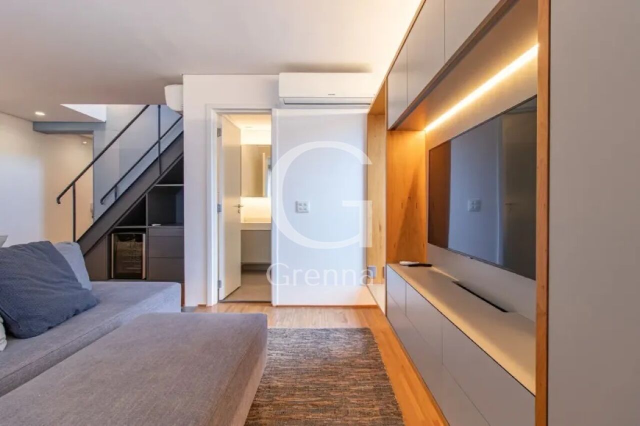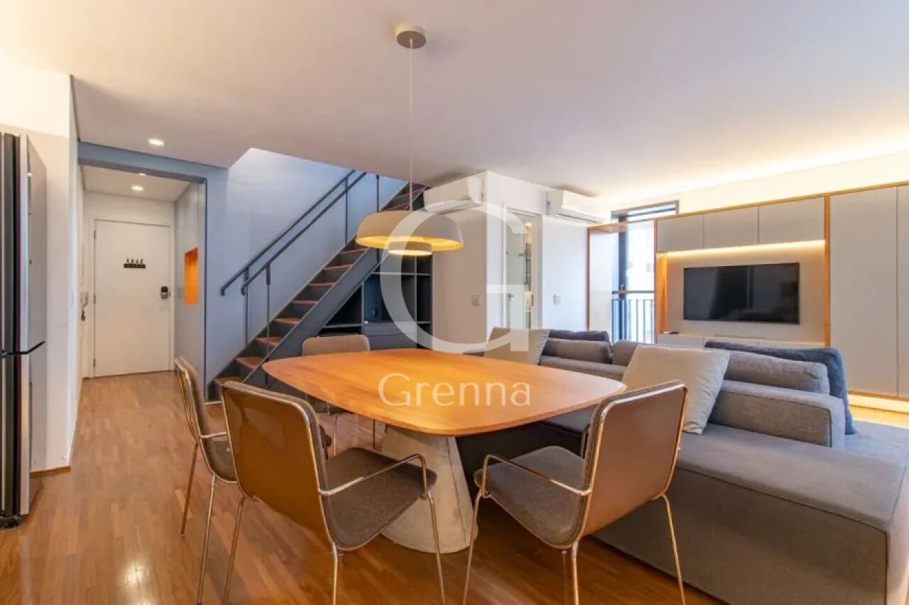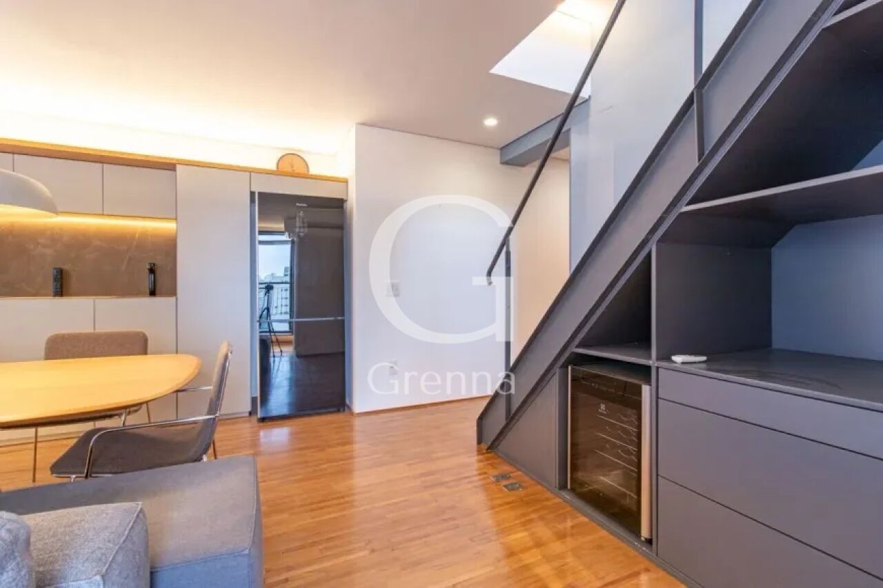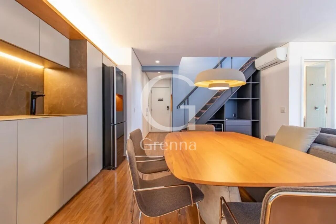 Este apartamento duplex conta com 01 dormitório (01 suíte), sala de estar e jantar, cozinha americana, 02 banheiros e 01 vaga de garagem.