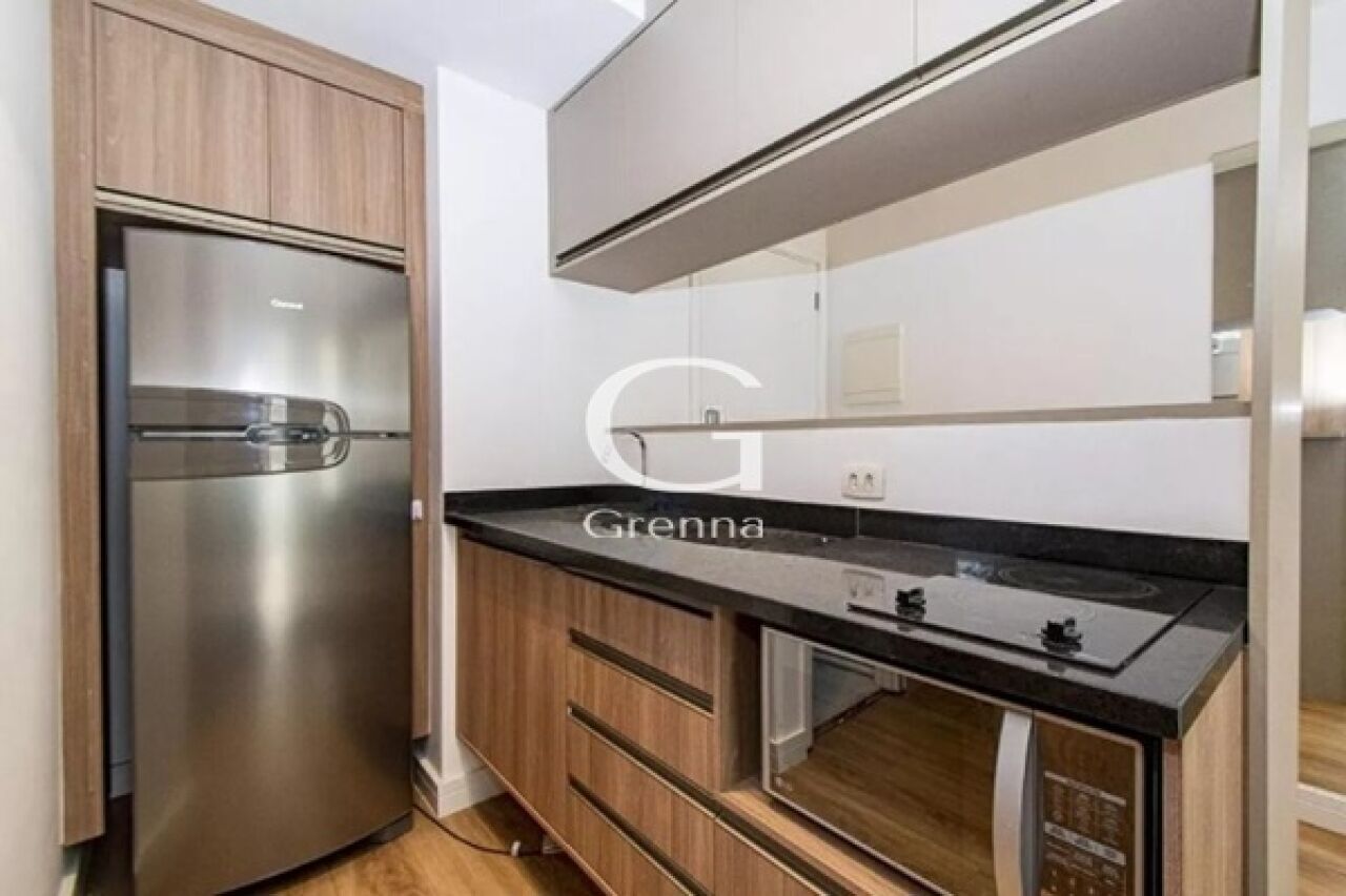 Este apartamento oferece 1 dormitório integrado com sala e cozinha, 1 banheiro, varanda e 1 vaga de garagem.