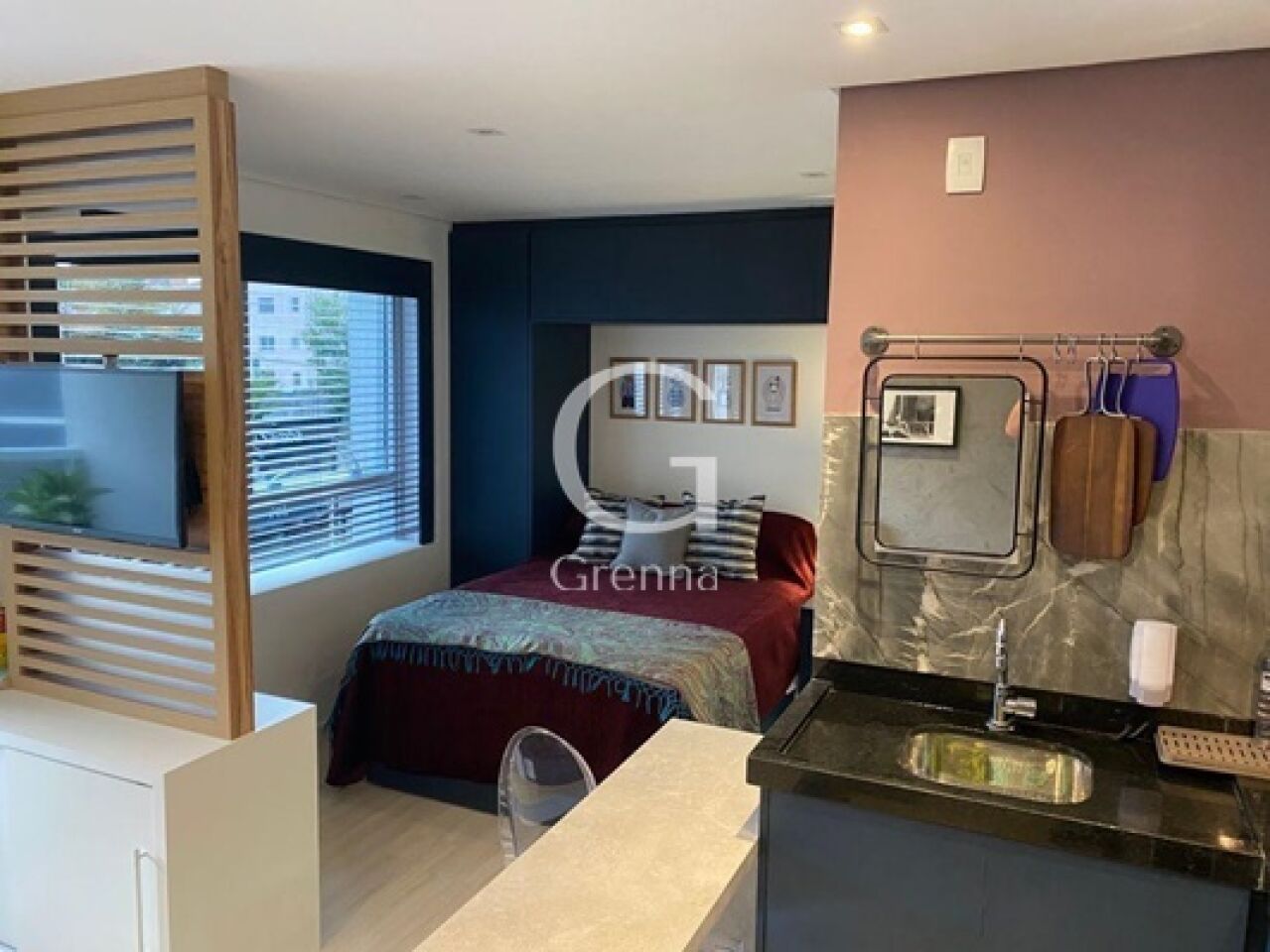 Este apartamento oferece 1 dormitório, sala, 1 banheiro, cozinha, varanda e 1 vaga de garagem.